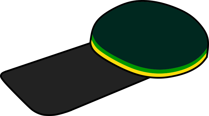 C’est une plaque de carton plastifiée. Sa taille est variable, allant de quelques centimètres à 18cm. Si la taille le permet, on y appose une série d’autocollants. Le plus fréquemment, les autocollants n’ont de signification que la sympathie interfacultaire au sein des étudiants baptisés.