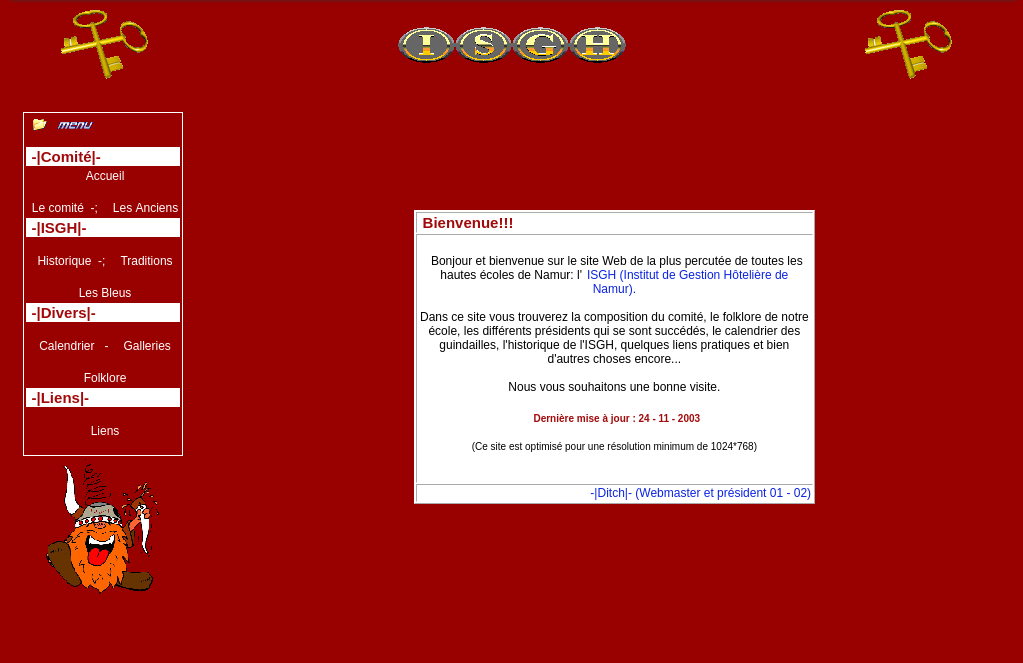 Pour la première fois, l’ISGH se retrouve avec deux présidents. Didier Lefebvre est poussé à se présenter lors de la passation de comité et est élu. Mais cela pose problème puisqu’il effectue ses études à l’IESN et non à l’ISGH. Xavier Rennotte le rejoint alors à la tête du comité pour faciliter la gestion du cercle avec un président qui n’appartient pas à l’école. 8 bleus finissent le baptême cette année-là.